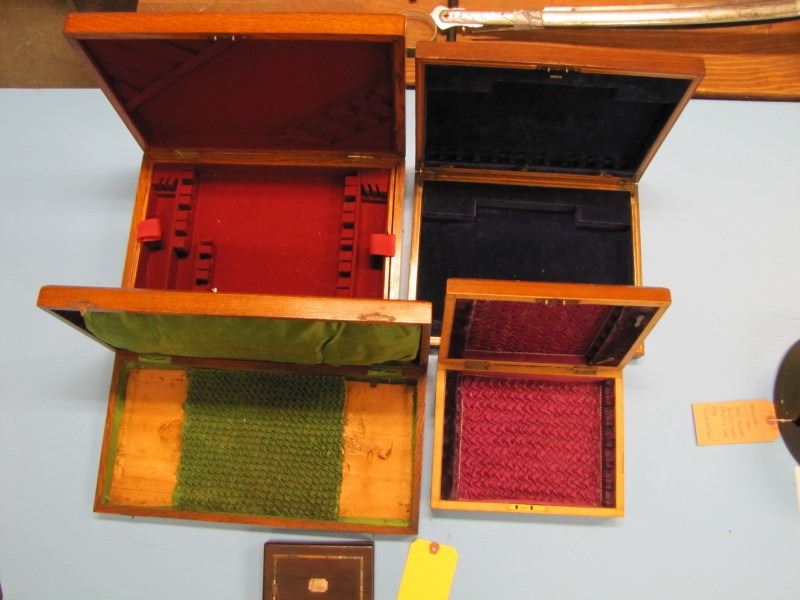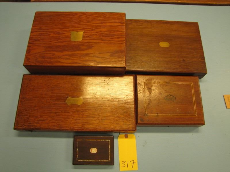 lot of 5 assorted hope and walnut boxes suitable for casing antique pistols