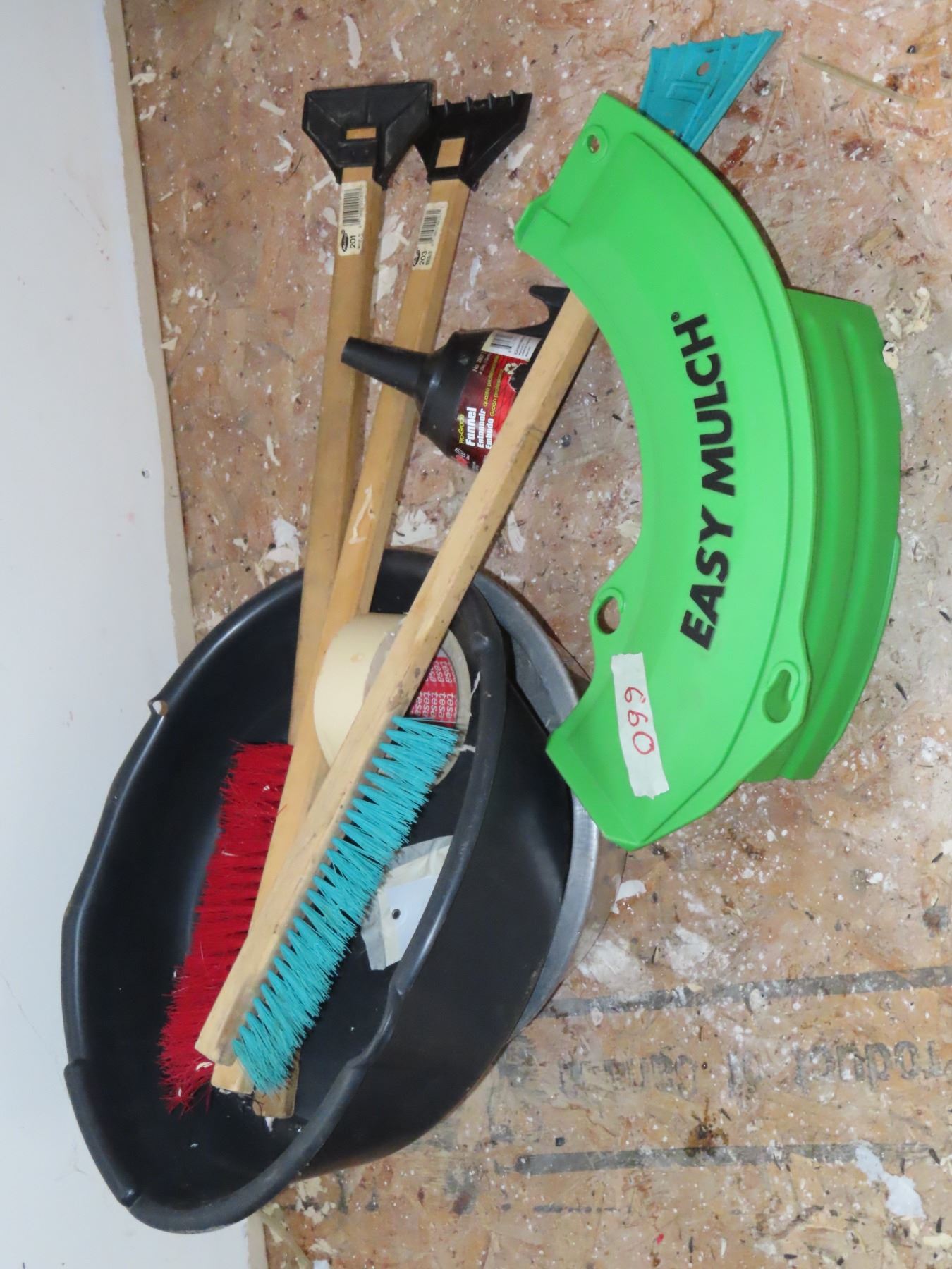 lot of assorted car items (window scrappers, plastic oil catch-all, funnel, etc.)