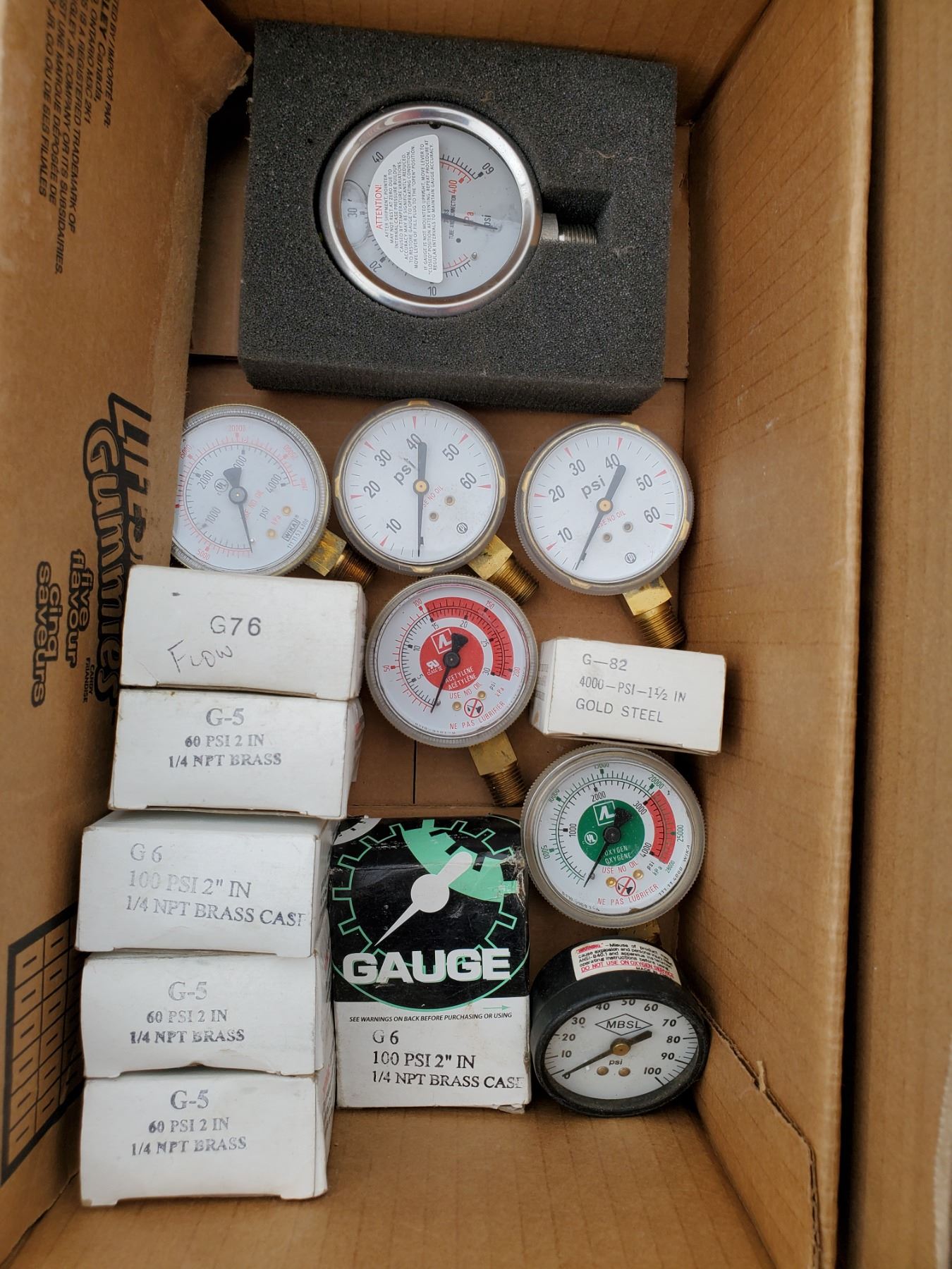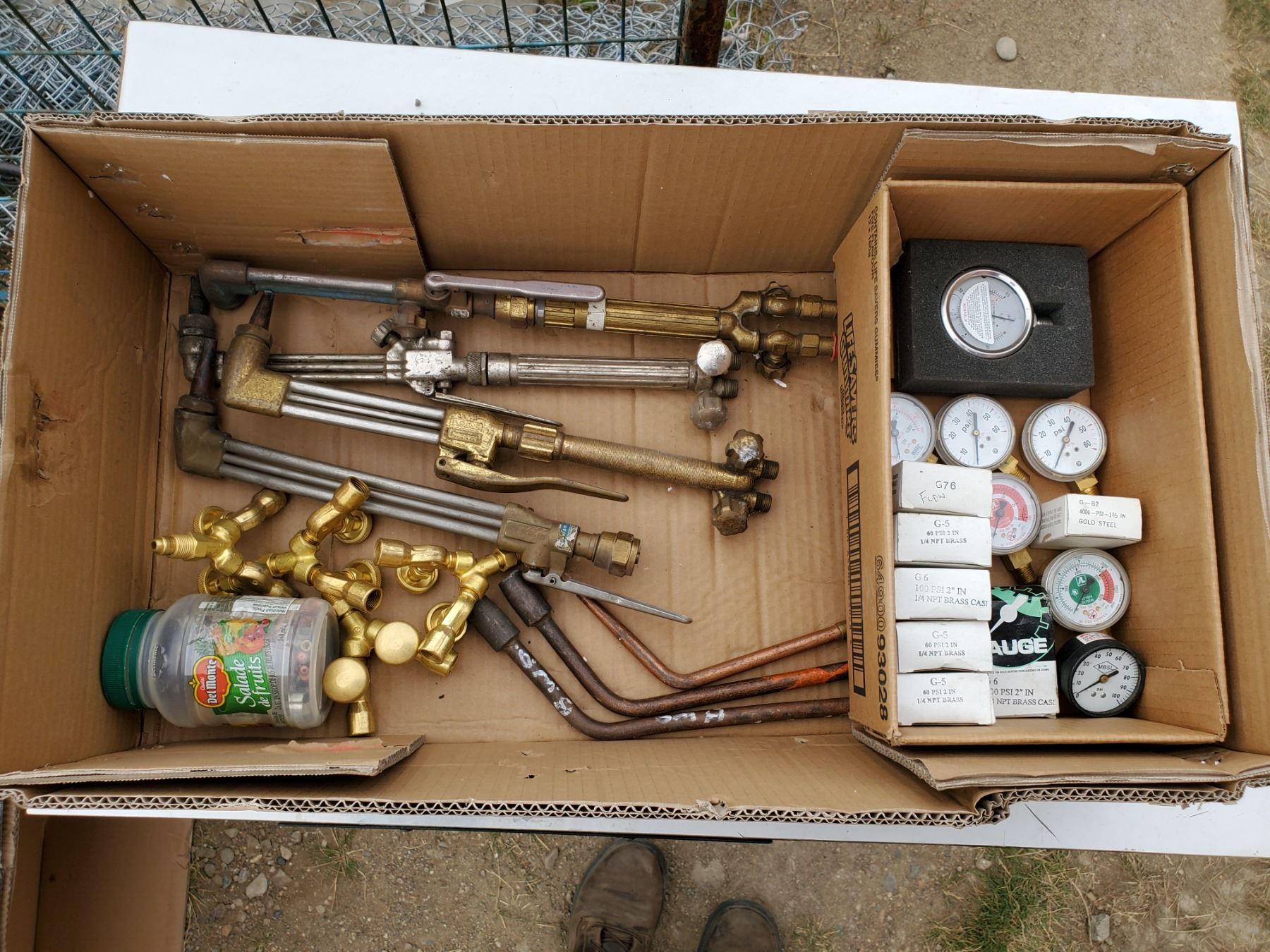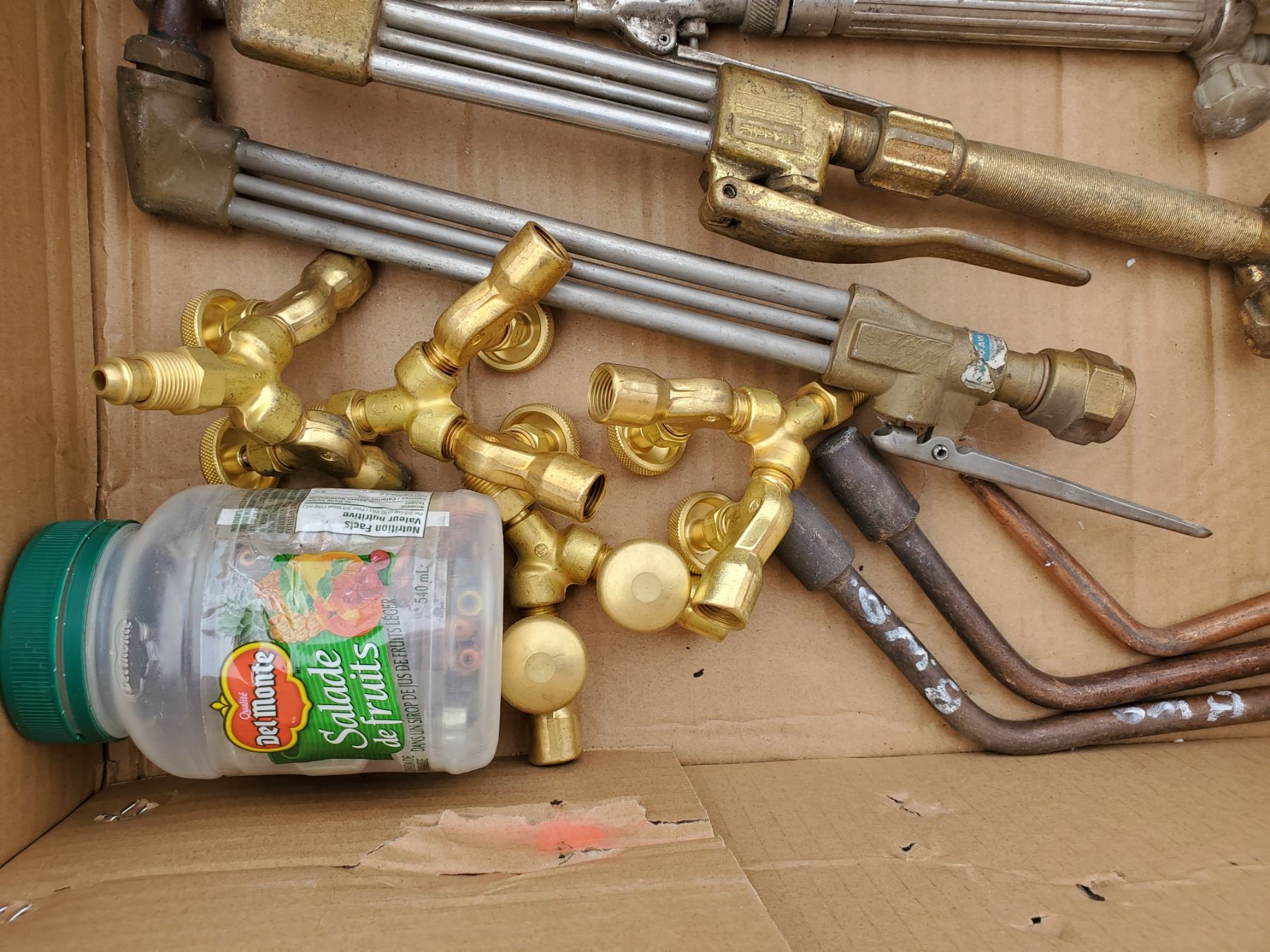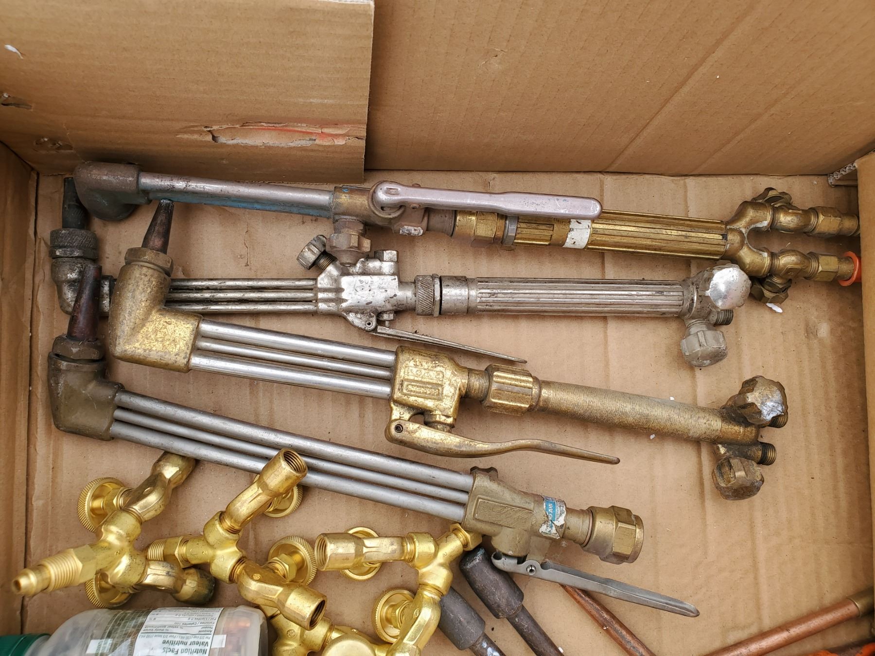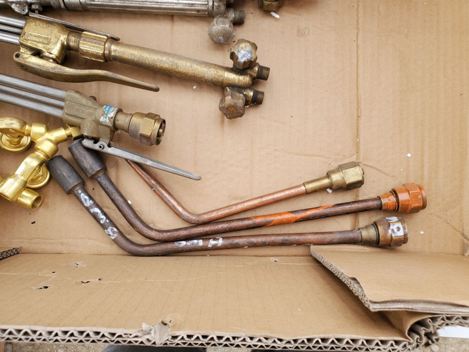 lot of assorted welding items -torches, gauges, jar of tips