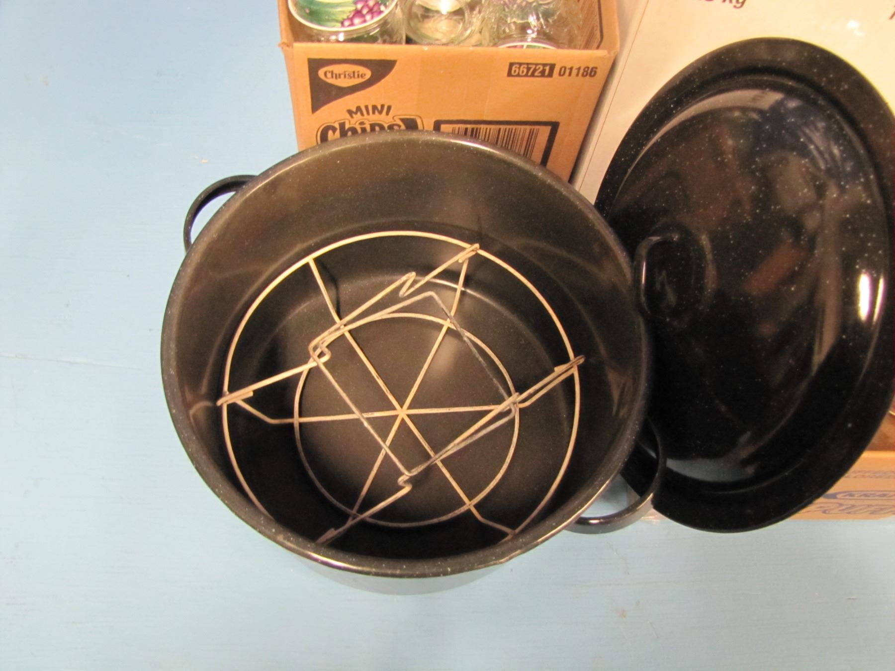 lot of canning jars and canner