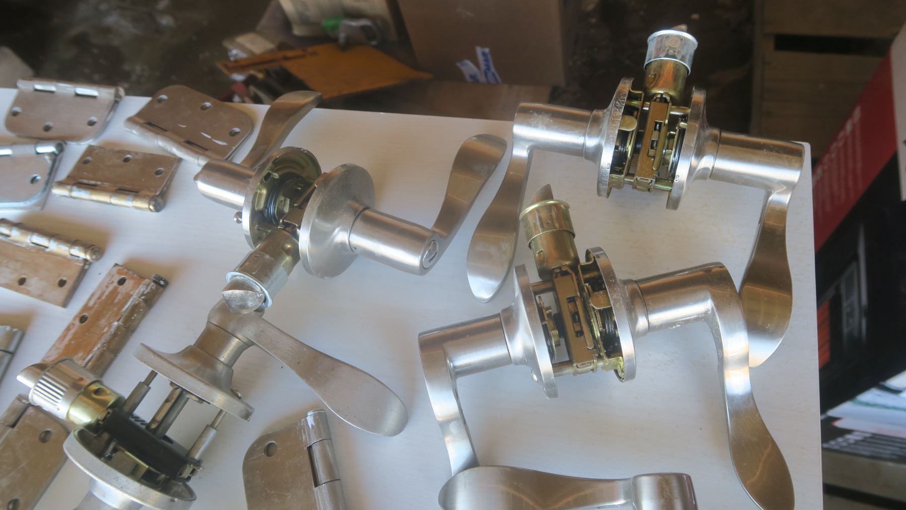 lot of door handles and hinges