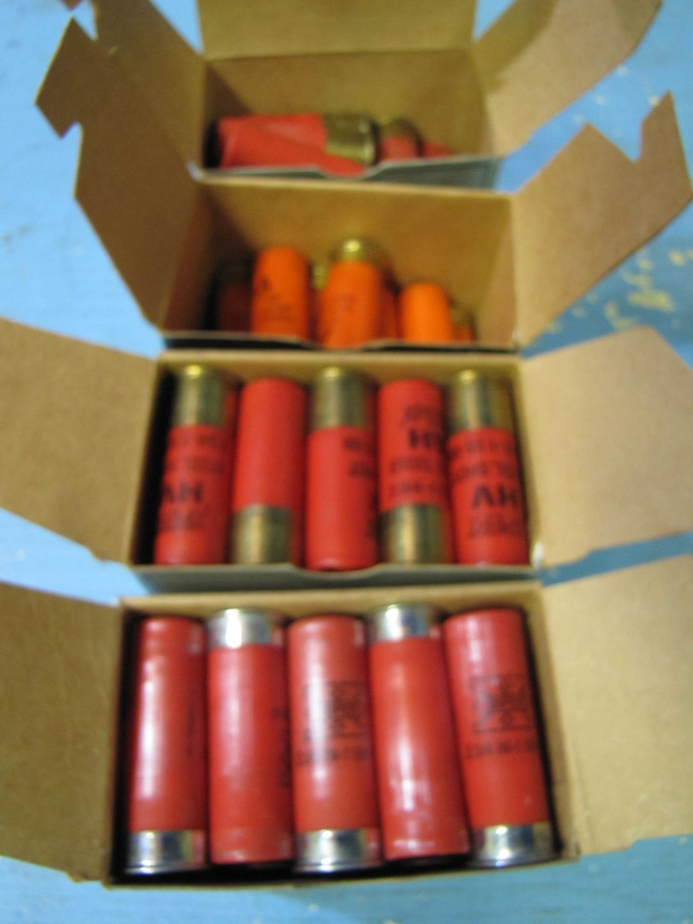 lot of four boxes of shotgun shells two are only partially full - AS IS - CONTENTS NOT CONFIRMED