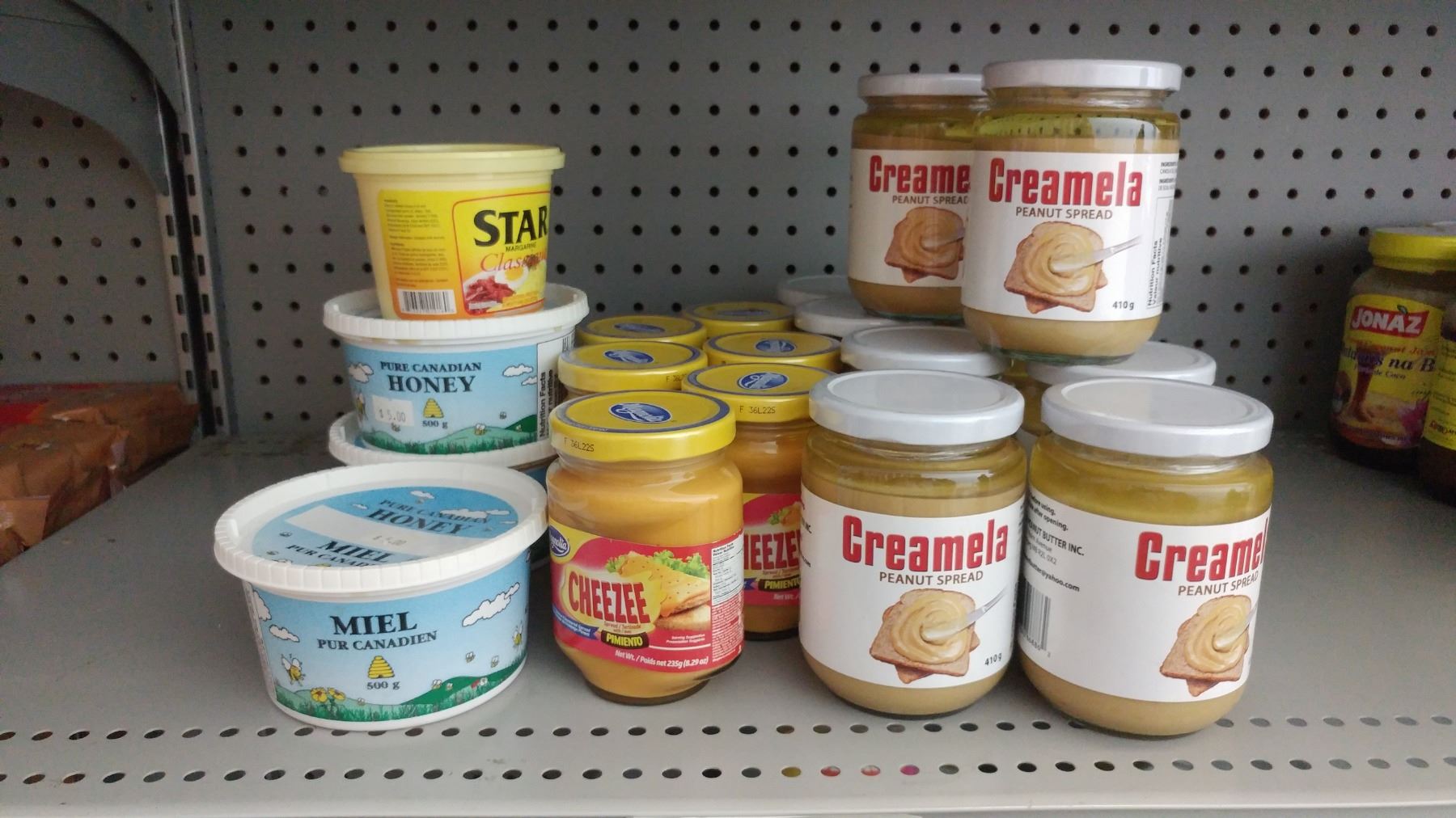 lot of peanut spread, cheezee spread, honey. Approx 20 jars.