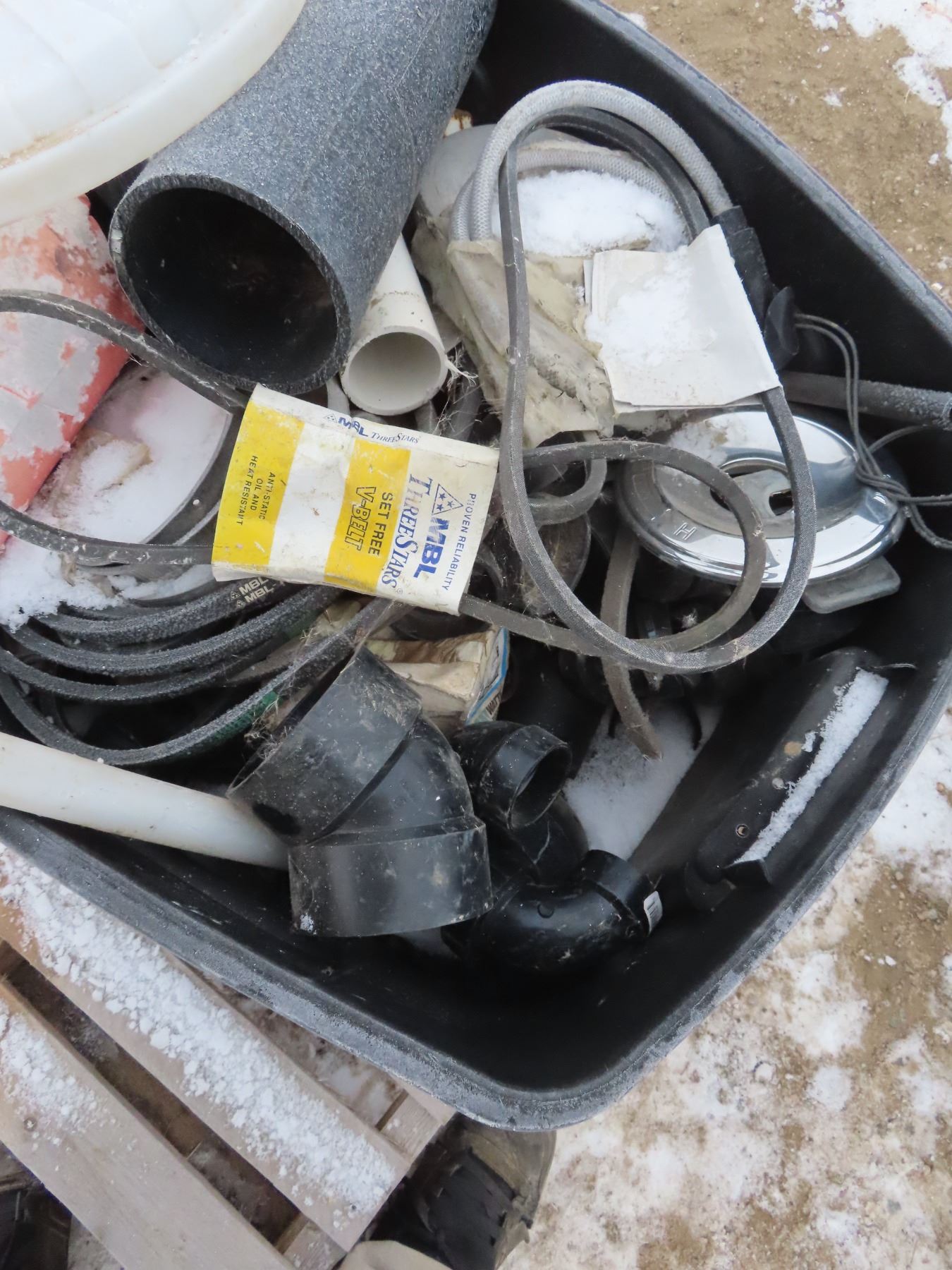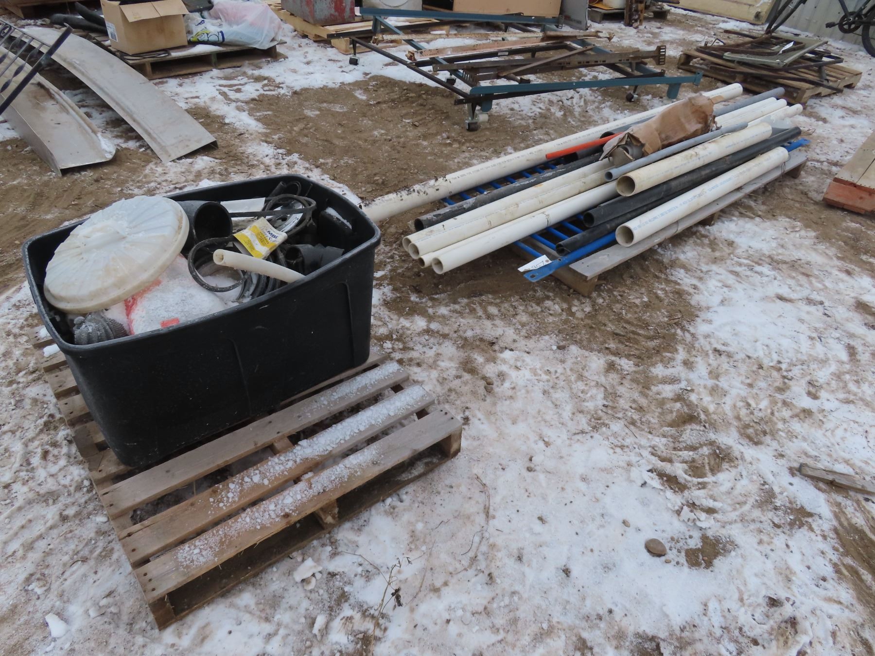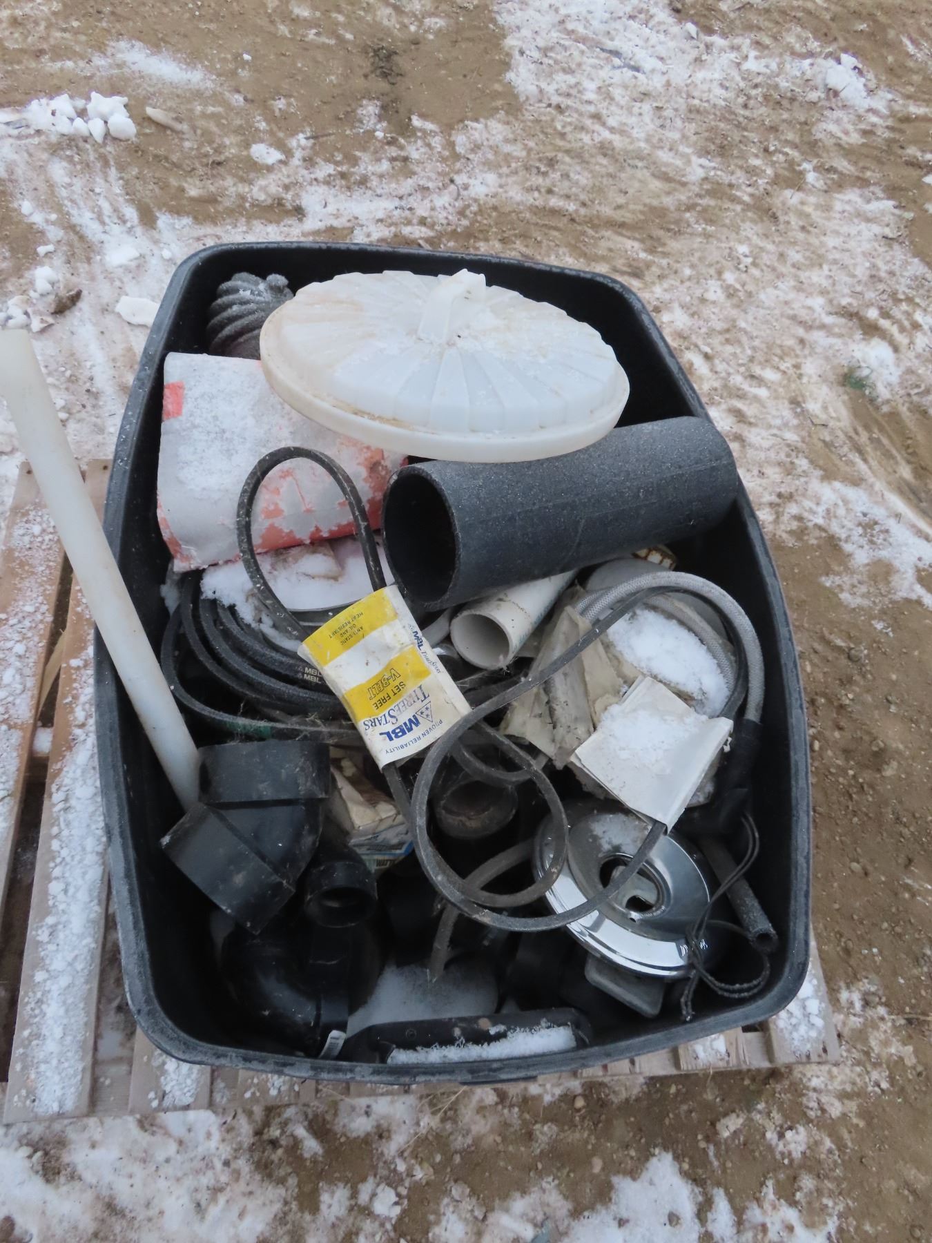 lot of pvc piping , misc sizes widths and pieces . Caps and angles in tote