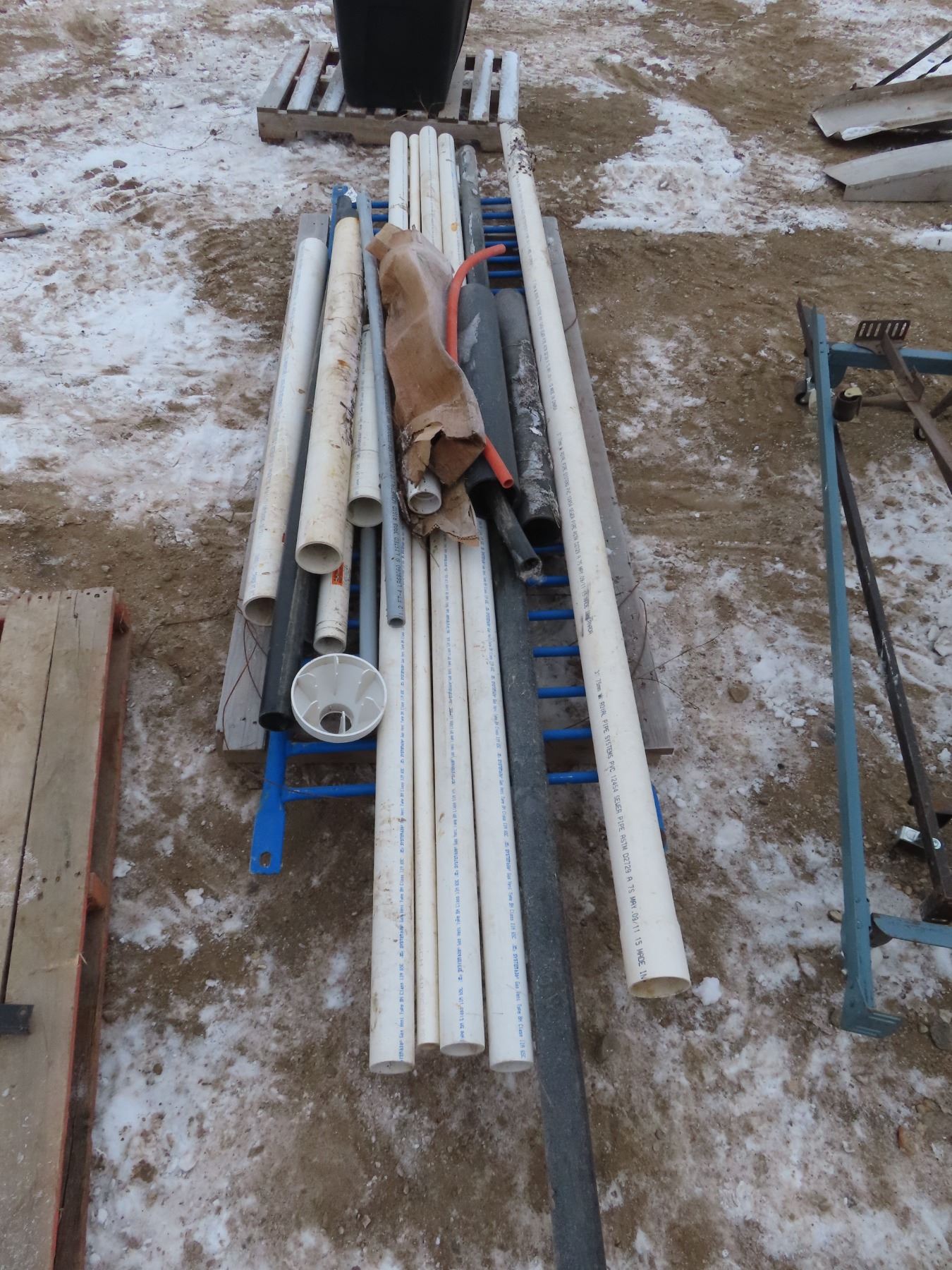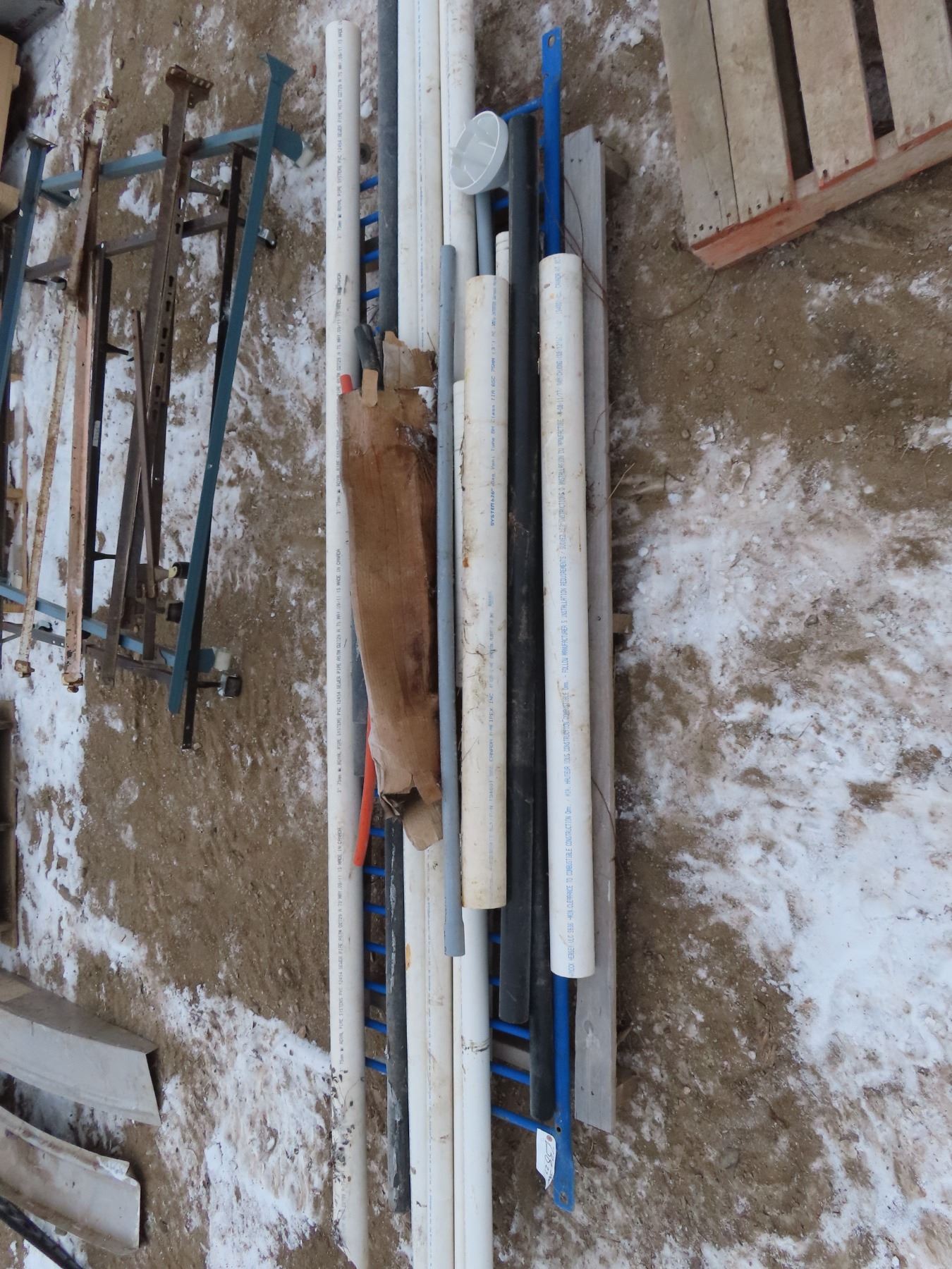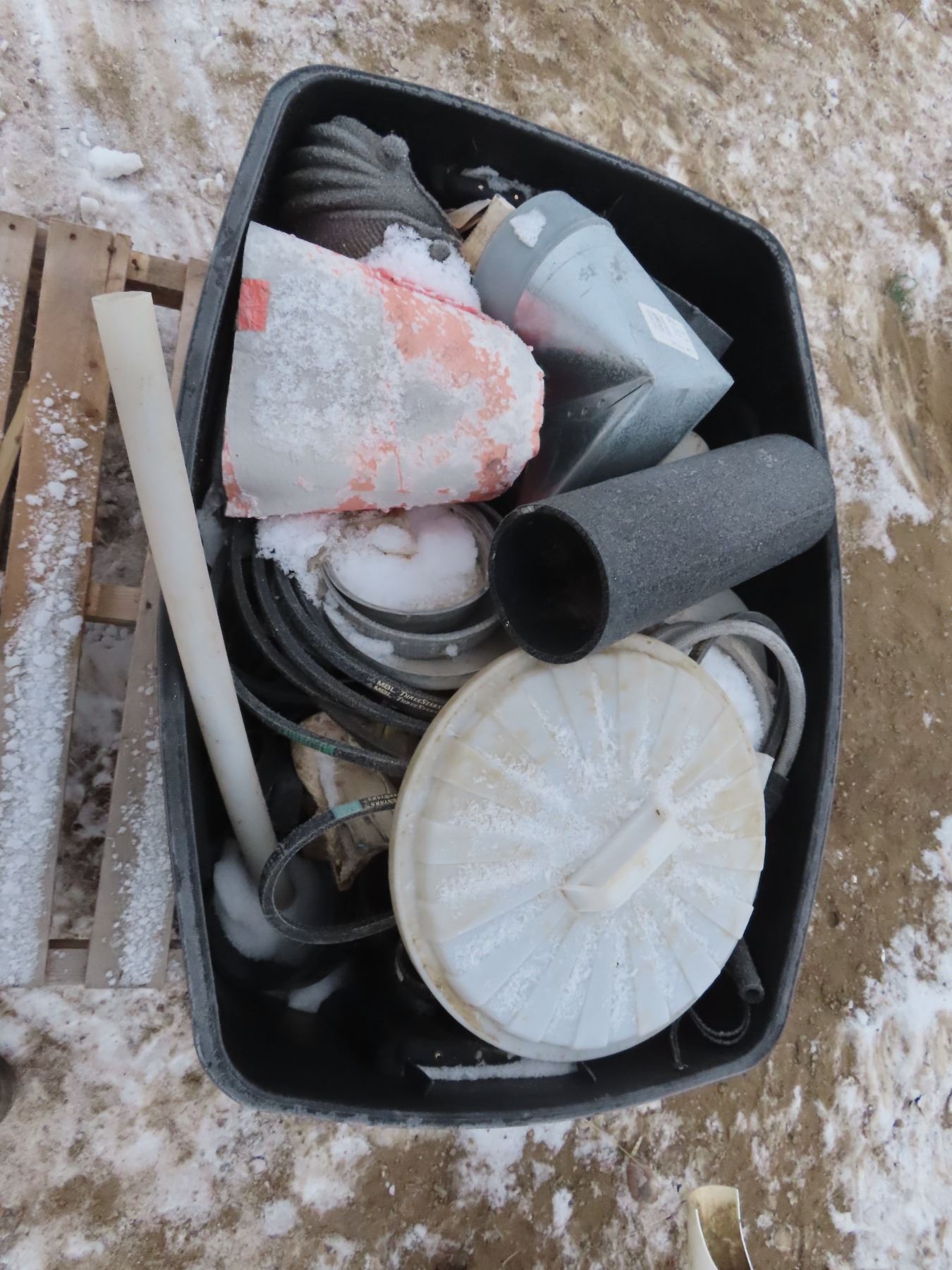 lot of pvc piping , misc sizes widths and pieces . Caps and angles in tote