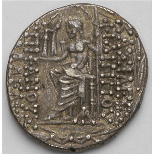 <B>lot of two Seleukid tetradrachms.</B></I> Includes: Demetrios I Soter. Antioch, S.E. 160 (153/2 B.C.). SMA 111; SNG Spaer 1274. Toned VF // Philip I Philadelphos. Antioch. SMA 437; SNG Spaer 2799. VF.
