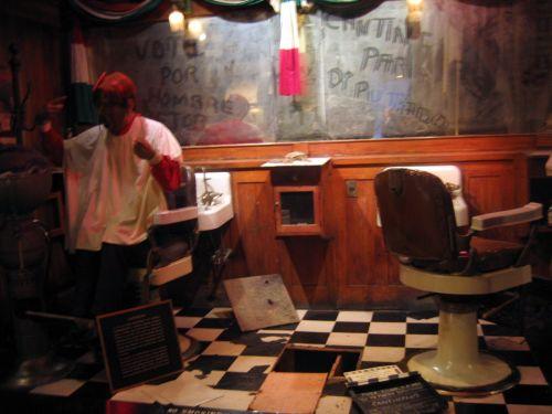 (lot) set/scene - Barber shop: 2 chairs, 2 sinks, vulcan unit & curtains. (Wax figure not included)