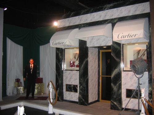 (lot) set/scene - Cartier in Beverly Hills Rodeo Drive scene & props: awning, 1 grey Studio Floor light, divides, walls. (No wax figure)