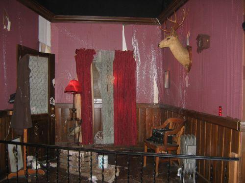 (lot) set/scene - stage props (pictures, deer head, chairs, lamp, rack & typewriter chair)