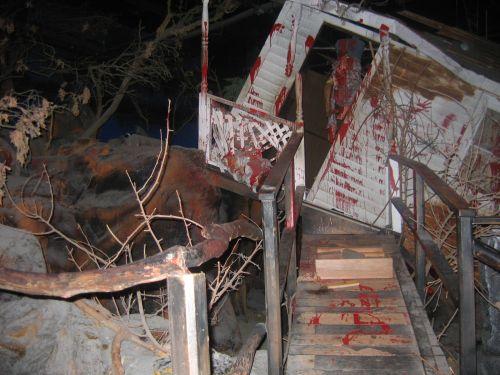 (lot) set/scene used for Movieland's Texas Chainsaw Massacre - Includes house, dismembered wax figures & rocks