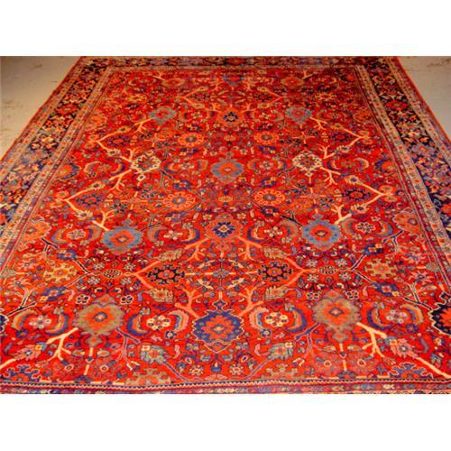 This is an antique persian rug. It has 100% wool pile on cotton base. It's an early 20th Century piece. The piece has great craftmanship, as well as being a timeless piece of art.