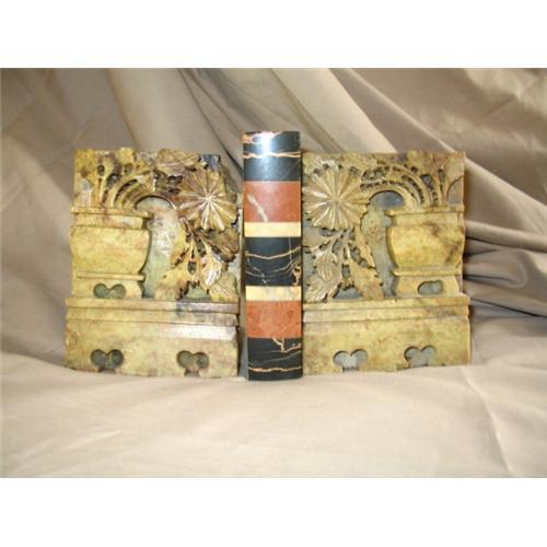 This is remarkable. Marble carved ends of the bookends to flank the side of a marble book. Simply unique and stunning.
