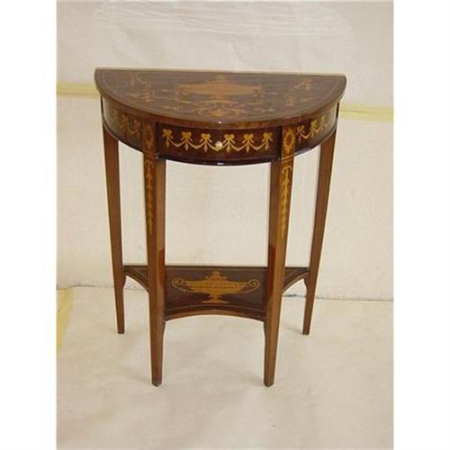 <tr><td>Title:marquetry halvemoon sidetable with 1 drawer </td></tr>