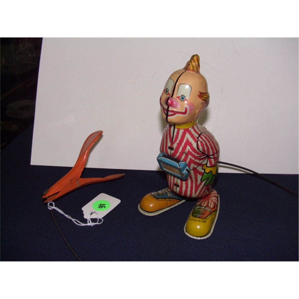 mechanical wired remote tin clown, Carabelle by Kagran Corp. clown hops when you press trigger