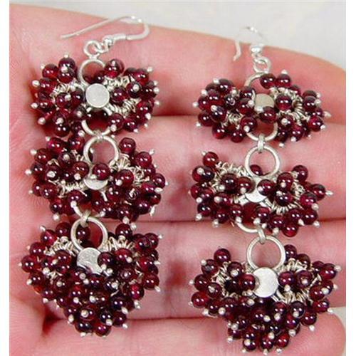 Inspired by the mystic allure of ancient India, this exquisite pair handcrafted earrings fashioned in sterling silver sporting a mass of genuine garnet. Creating a delicate, yet very substantial illusion of a red rose swaying in the tropic breeze. The earrings feature tiered labor intensive details, adding a luminous touch of sophistication. The earrings are approximately 2.5" in length with a combined gram weight of 37. COMES with our HIGHEST recommendations!! As with the majority of our treasures, one of a kind and if this tugs at your heart don't let it pass you by!