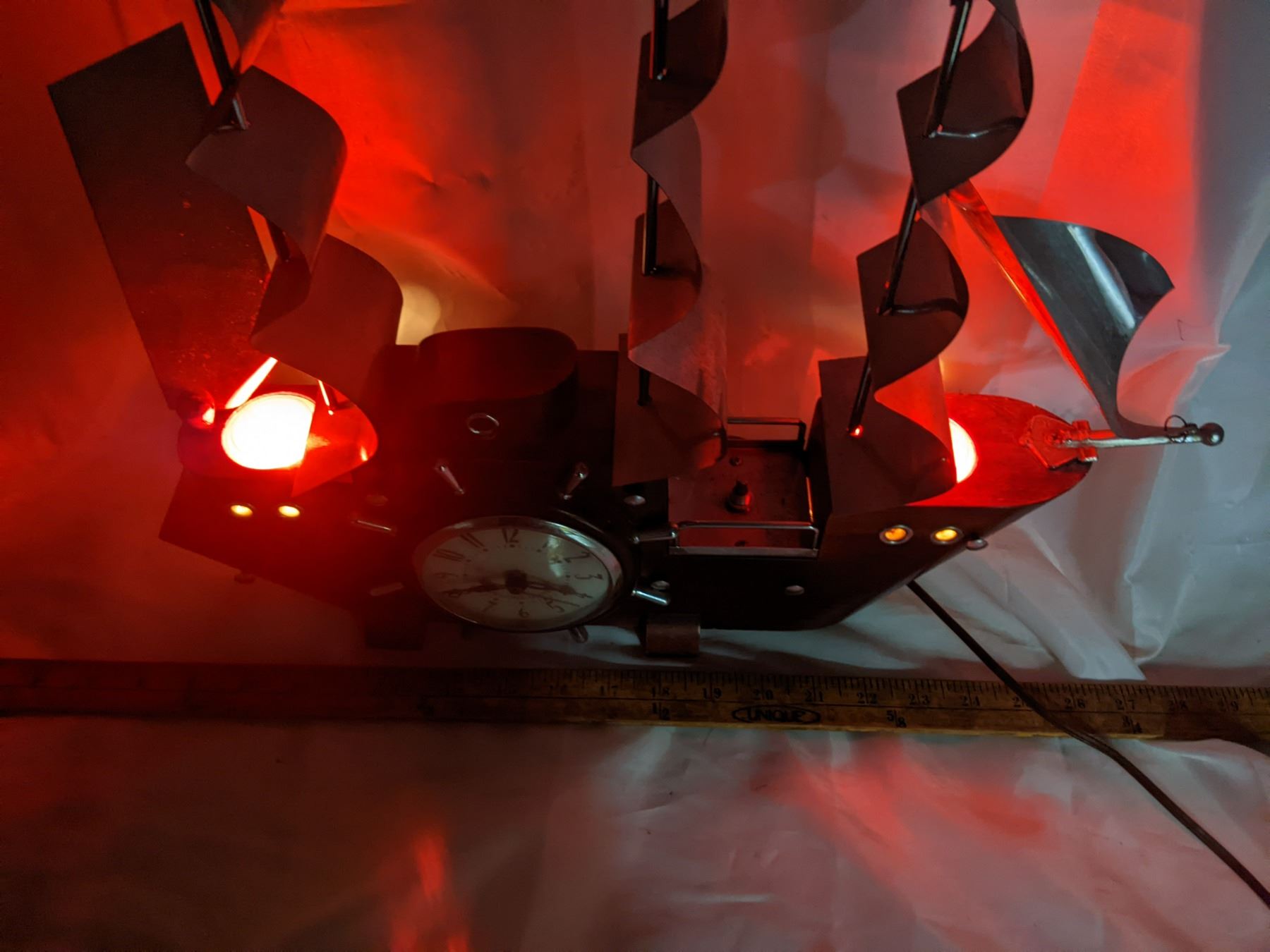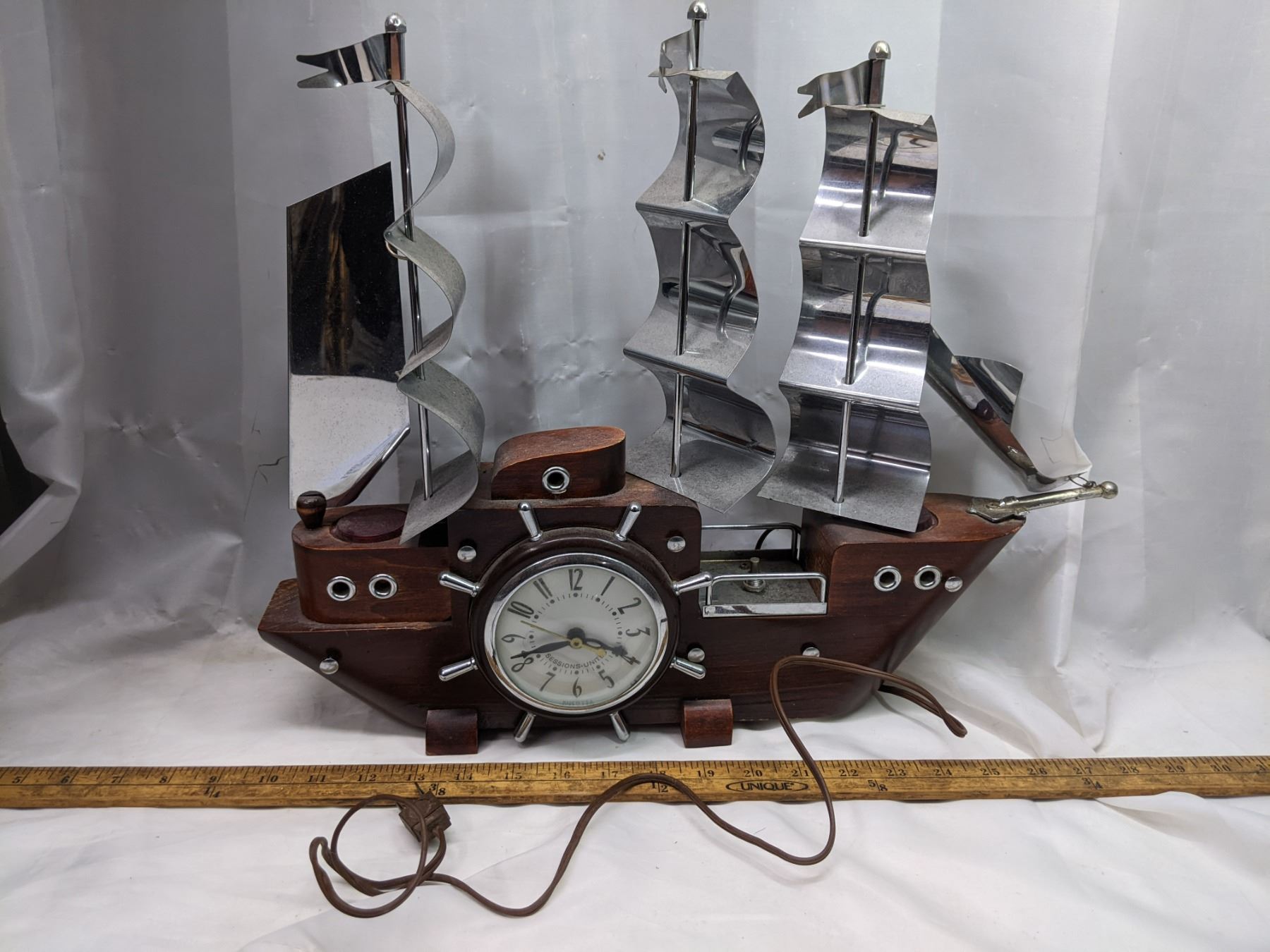 model ship clock with loghts - working, 19" long, 16" tall