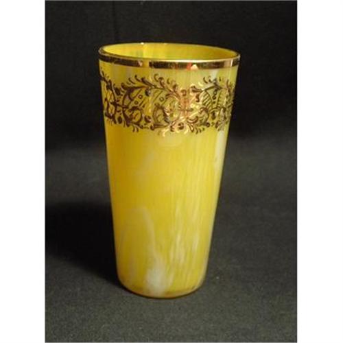 Moser Juice Glass ca. 1880 - 1930. It stands 4 1/4 tall. It is in perfect condition, and retains all its gold overlay on design and rim border. Gary Baldwin's book on Moser from 1997 lists these glasses at a value of 125.00 - 150.00. Keep in mind, his values are almost ten-years old. I am asking way below his value.