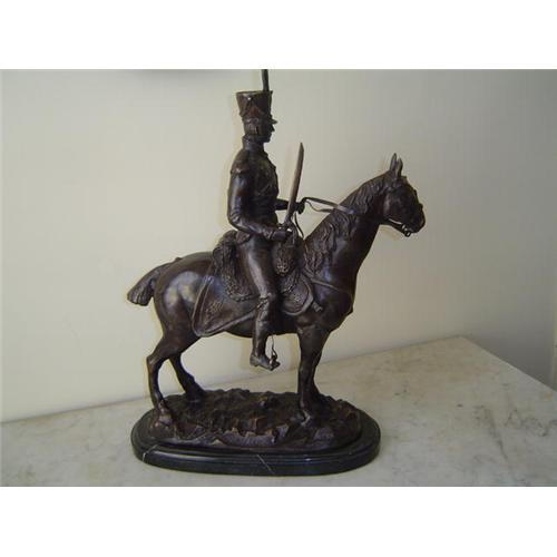 outstanding large bronze statue on a marle base , a Napoleon Hussard from "l`escadron de la mort ' who was his bravest soldier ,, signed J.R.Skeaping , british sculptor 1901-1980 . very high quality and detailed artwork . museum quality piece .