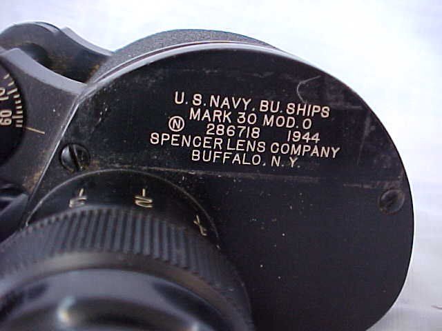 navy binoculars. WWII Navy Binoculars 7 x 50, with night lenses. US Navy BU ships. Mark 30 Model 286718 1944 Spencer Lens Co Buffalo, NY very good condition