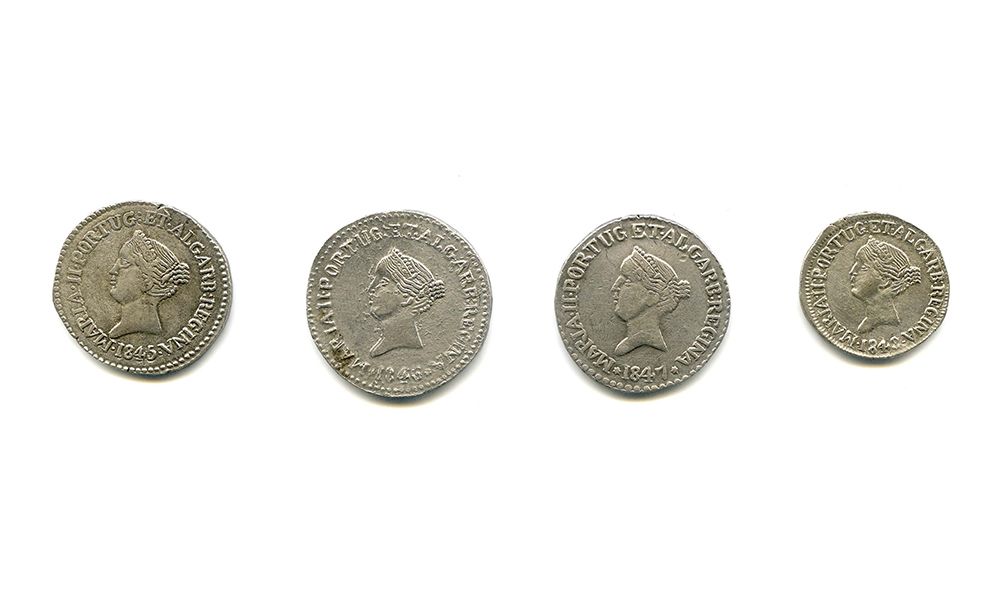 Rupia 1845 (22.01) MBC, 1846 Efígie menor (23.02) MBC, 1847 Efígie menor (23.03) MBC; Pardau 1848 (19.04) MBC+