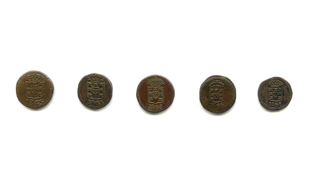 7 1/2 Réis 1845 (08.01) MBC; 6 Réis 1845 (06.01) MBC, 1848 (06.04) MBC;4 1/2 Réis 1846 (04.03) MBC; 3 Réis 1848 (02.03) MBC-
