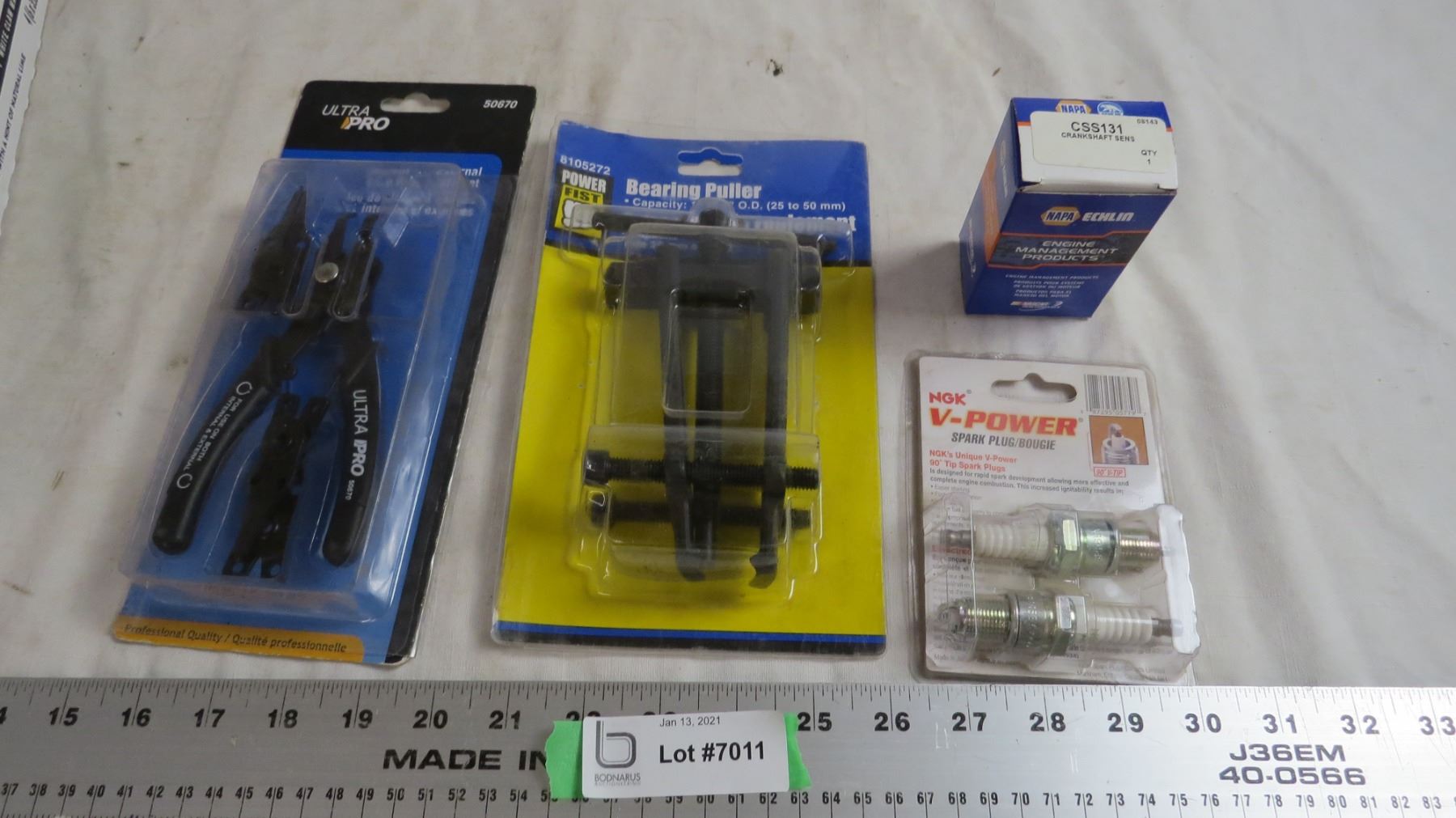 new snap ring plier set, bearing puller spark plugs, crankshaft sensor