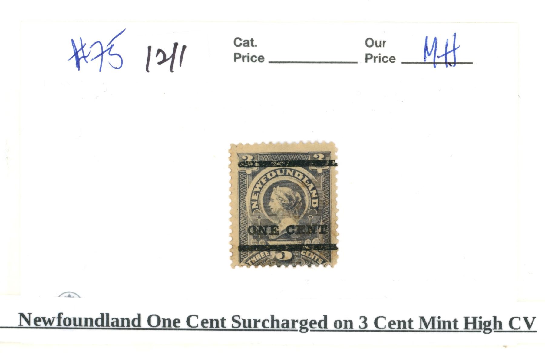newfoundland one cent surcharged on 3 cent mint high CV
