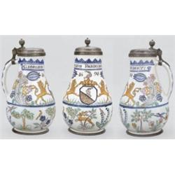 Habán, 1698, ónmázas fajansz, ón billenofedéllel és talpperemmel, "Georgius Pardubsky" felirattal, apró sérülésekkel, restaurálással, m: 35 cm, apró sérülésekkel, restaurálással