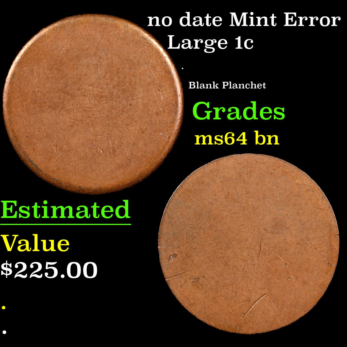 no date Mint Error Large Cent 1c Grades Choice Unc BN.