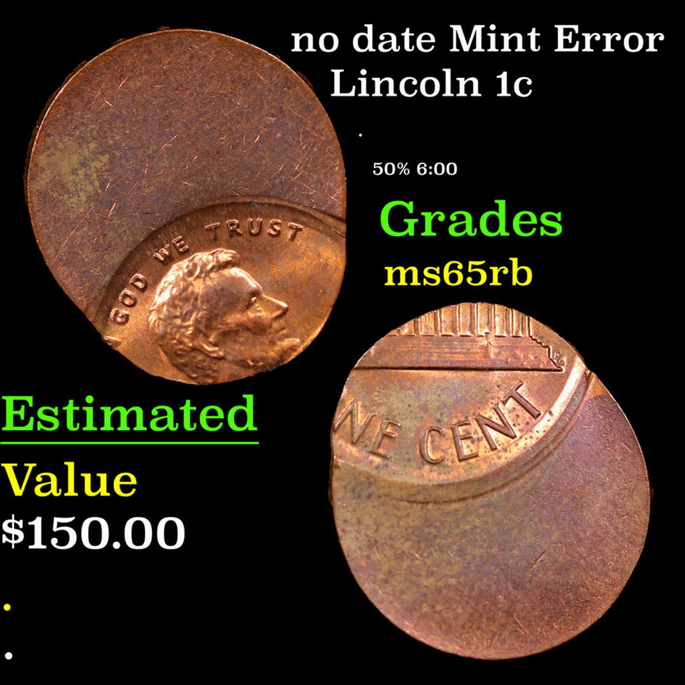 no date Mint Error Lincoln Cent 1c Grades GEM Unc RB.