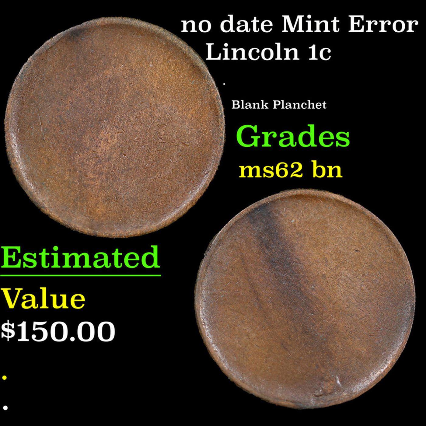 no date Mint Error Lincoln Cent 1c Grades Select Unc BN.