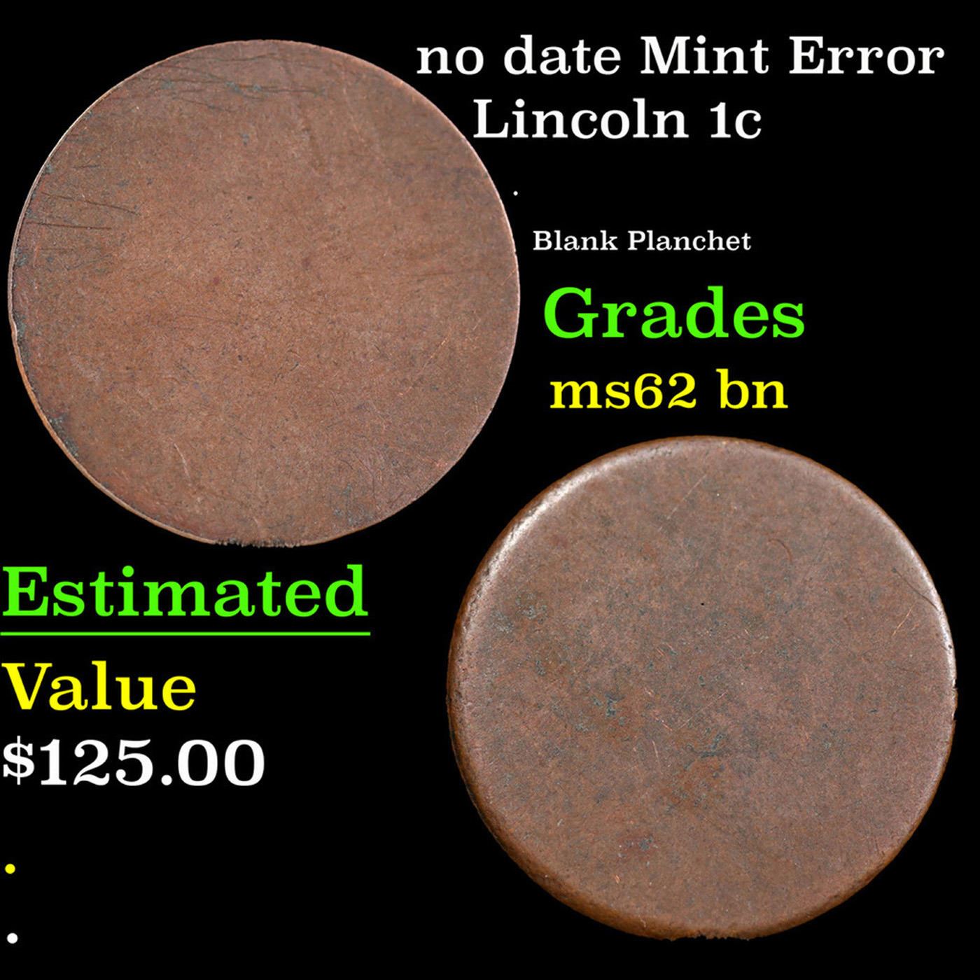 no date Mint Error Lincoln Cent 1c Grades Select Unc BN.