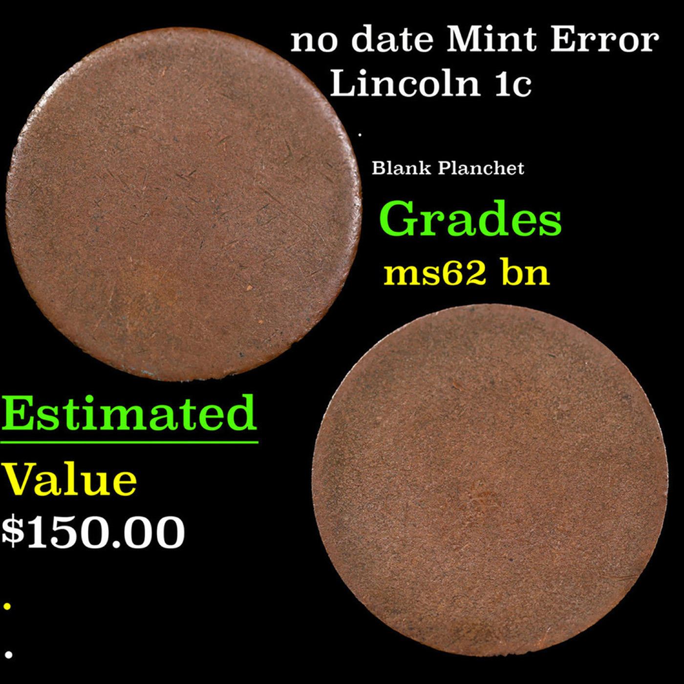 no date Mint Error Lincoln Cent 1c Grades Select Unc BN.