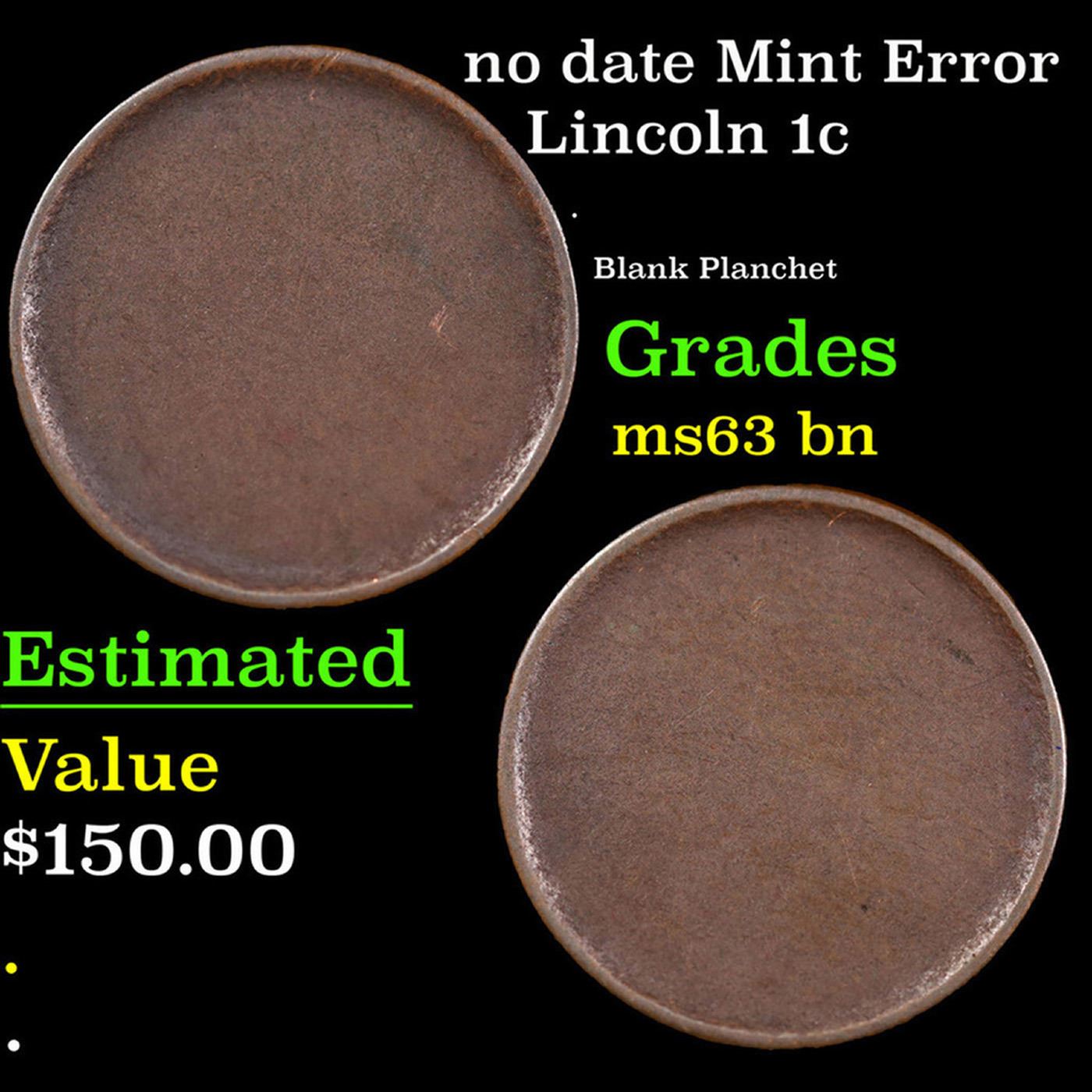 no date Mint Error Lincoln Cent 1c Grades Select Unc BN.