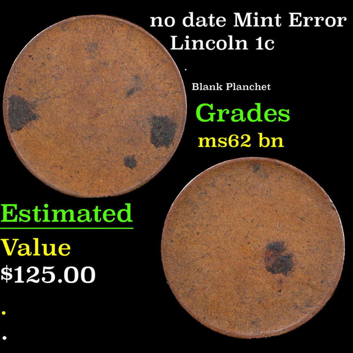 no date Mint Error Lincoln Cent 1c Grades Select Unc BN.
