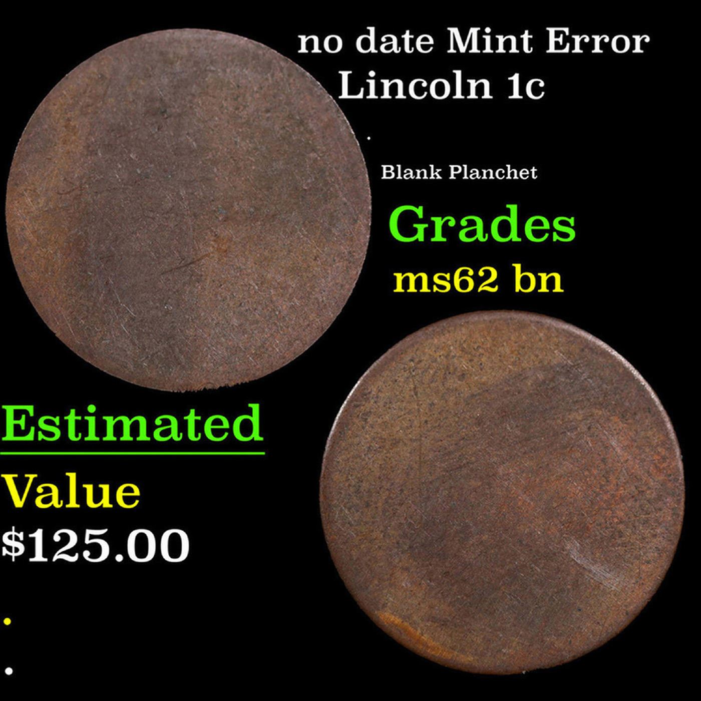 no date Mint Error Lincoln Cent 1c Grades Select Unc BN.