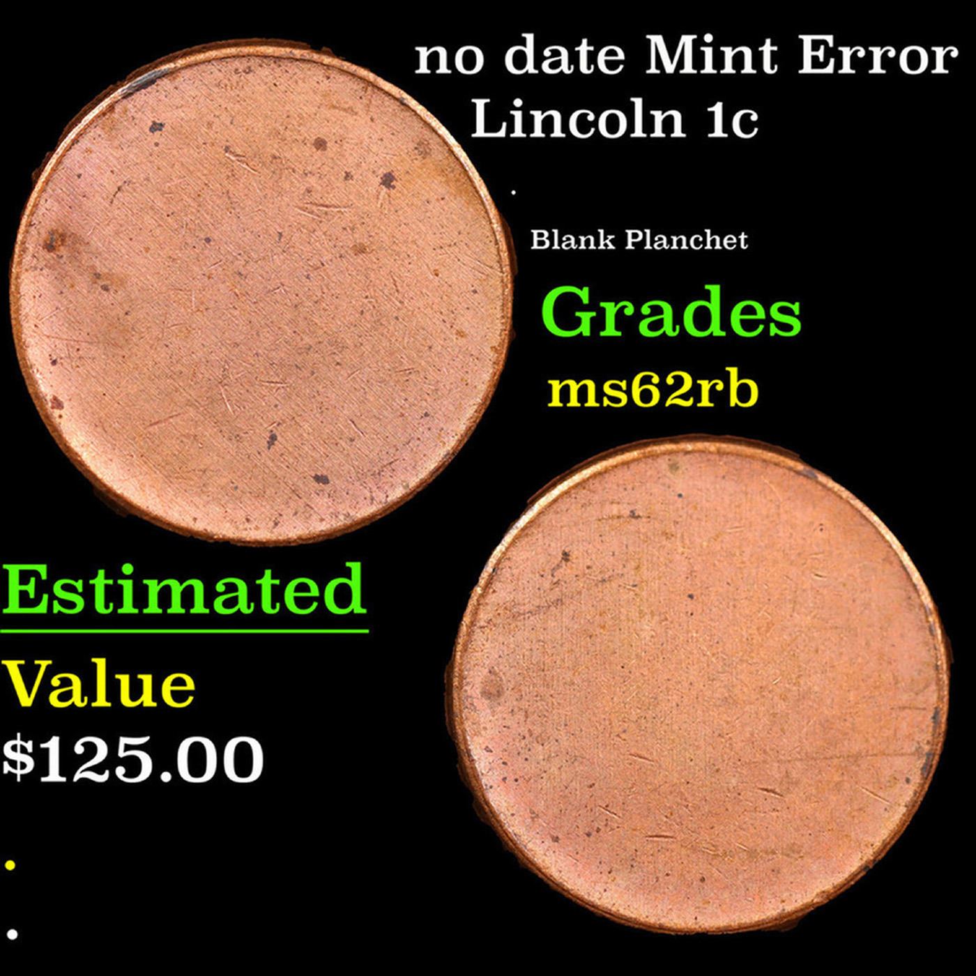 no date Mint Error Lincoln Cent 1c Grades Select Unc RB.