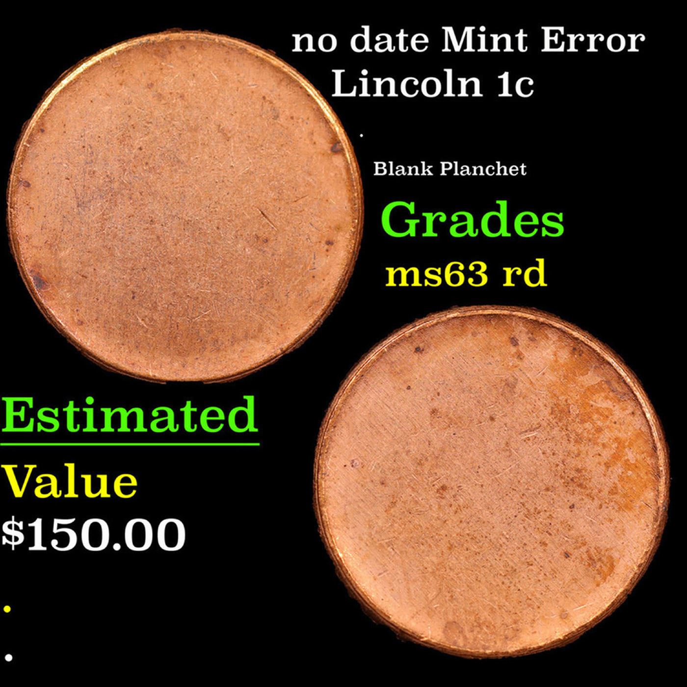 no date Mint Error Lincoln Cent 1c Grades Select Unc RD.