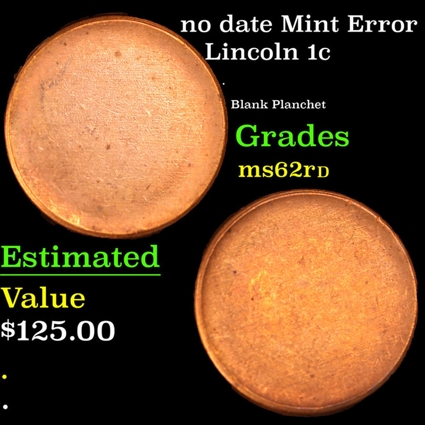 no date Mint Error Lincoln Cent 1c Grades Select Unc RD.