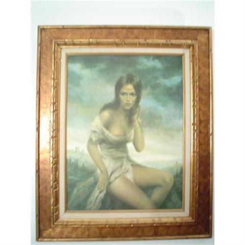 Vinciata (1911-1996) Lovely lady in distress or just being a tease. Framed. 24"x18". Excellnt condition. Off set Litho.