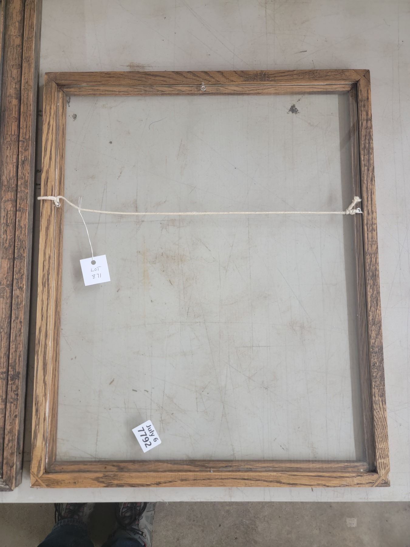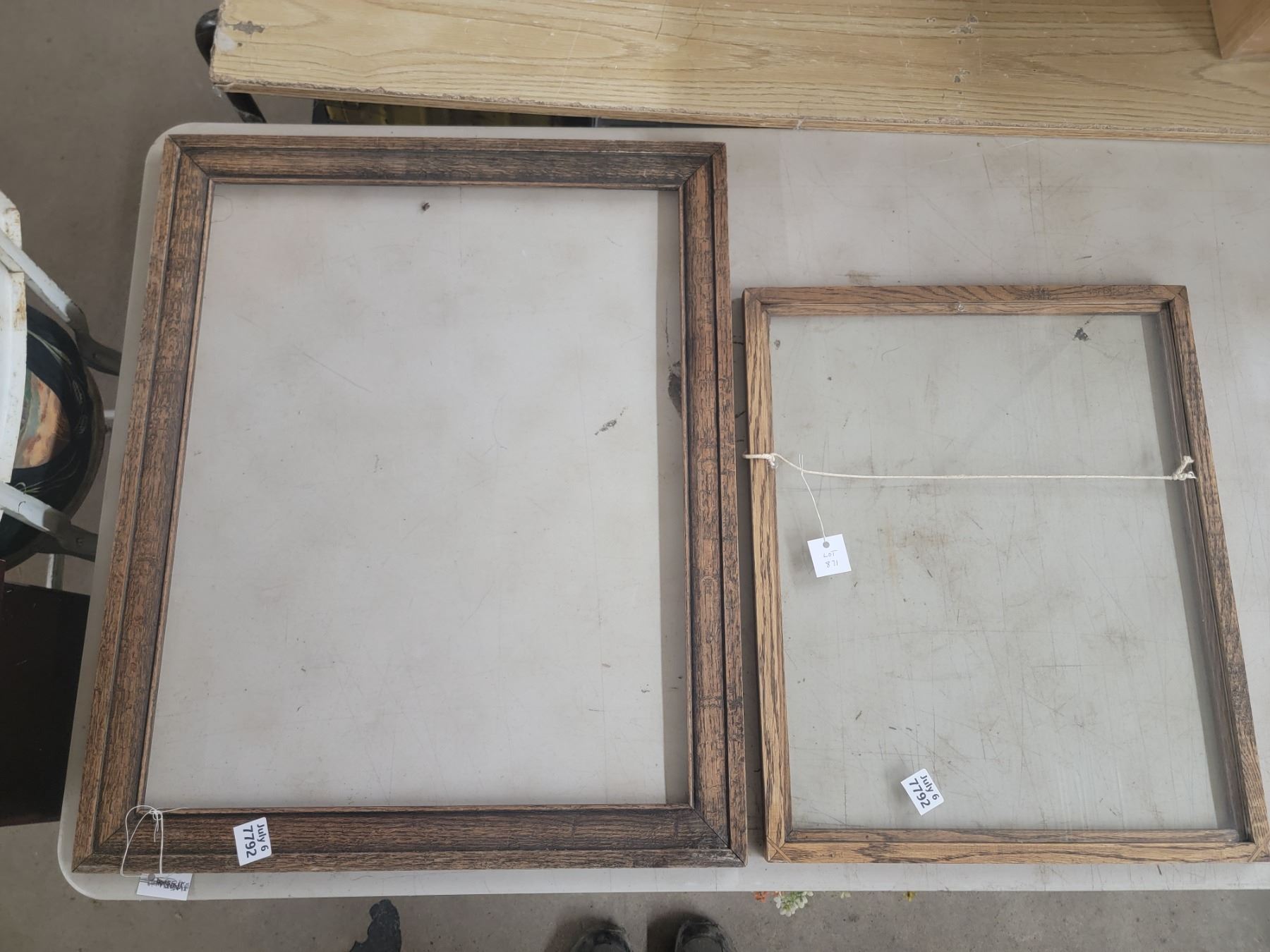 oak picture frames (1) 17.25 x 21" w/ glass, (1) 22.5" x 27.5"
