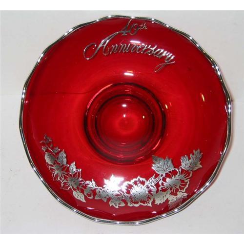 Estate find, 7 inch GLASS RED FLOWER 40TH ANNIVERSARY Plate or Bowl. In good shape it is beautiful to display, no idea how old
