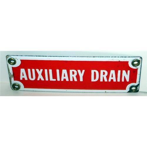 Old vintage used small porcelain Auxiliary Drain Plumber sign, approx. 6x4