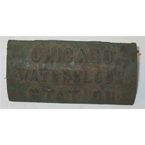 old warehouse in downtown New York City. Moderate oxidation. A little green paint left on it. Measures approximately 5" x 3". Excellent, hard to find addition for the lock or clock collector!