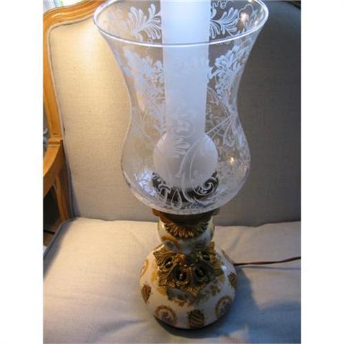 this Exquisite antique french and porclain table lamp is acquired from a home and estate of a retired prominent antique dealer.it has been electrically converted and has a original sticker on the bottom for inspection. the lamp is embossed bronze base with fine crystal glass. the porclain base is beautifully painted with gold and flowers. lovely colors and lively base. the lamp is in excellent condition with normal wear and tear. the lamp measures 19 inches tall and 6 inches wide. it is simply gorgious and decorative!MUST MEET RESERVE!
