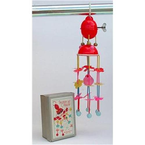 CELLULOID MERRY GO ROUND WIND-UP TOY, in original box marked ?Oku-Celluloid Toy Made in Japan,? 12? long,1930s, in excellent original condition with occasional dent or minor crack in celluloid. (As with all of our merchandise, this is a vintage collectors? item with small parts and NOT suitable as a plaything for children.)