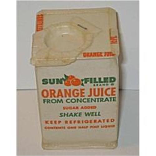 3 1/2" tall vintage waxed flat top Minute Maid Sample Advertising Juice Container. These are very scarce and collectible. These were the first type of waxed containers used in schools. They were made in the 1950s till as late as the early 60s in some areas of the country. Marked Minute Maid Orange Juice Orlando, Fl.