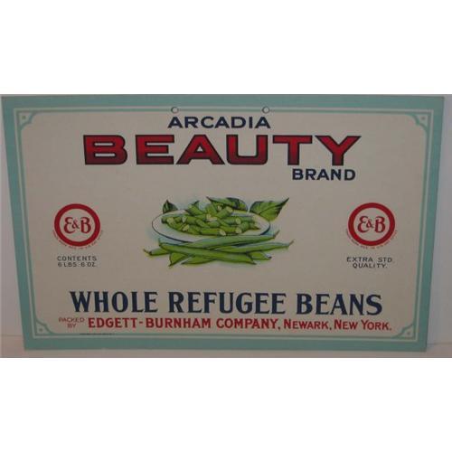 Excellent condition, 6x10 old vintage ARCADIA BEAUTY REFUGEE GREEN BEANS Farm Sign.