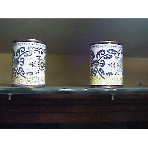 pair of old cylindrical enamel ware, valued at $2000</em></td>