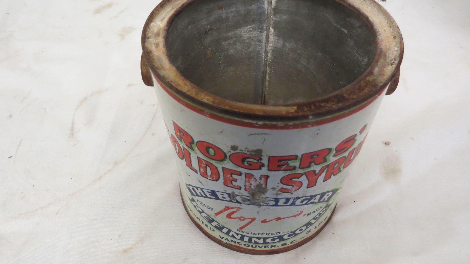 old rogers syrup tin 5lb (no lid or handle)